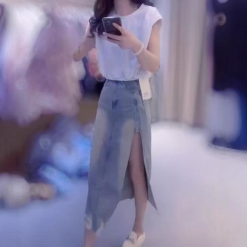25076婕妤秀系帶短袖t恤女夏季半身裙純色獨特小眾百搭上衣