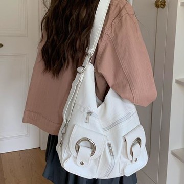 日系帆布斜挎包大學生帆布包時尚百搭單肩包通勤大容量女包慵懶風