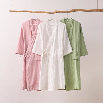 全棉紗布浴袍男女士春夏季薄款睡袍日系純色情侶睡衣中長款浴衣