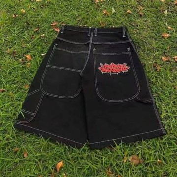 五分褲男寬松闊腿美式復古漸變牛仔褲男潮牌高街直筒oversize春秋