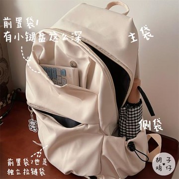 ins森系純色百搭雙肩包女生簡約書包高中大學生初中生背包女雙肩