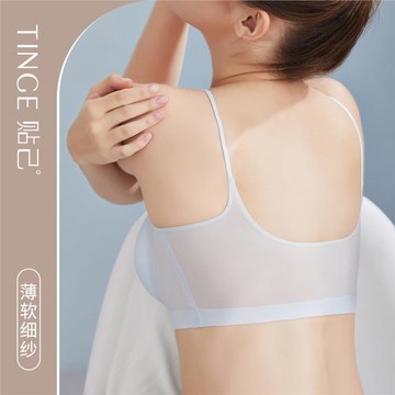 TINGE貼己無痕細肩帶內衣女夏冰絲涼感小胸聚攏薄款文胸美背抹胸