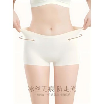 2條裝 新款女冰絲內褲中腰包臀平角打底無痕隱形舒適二合一安全褲