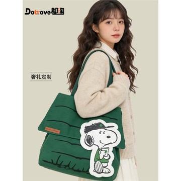 都淘森系可愛史努比帆布包女士2026新款大容量百搭通勤單肩托特包