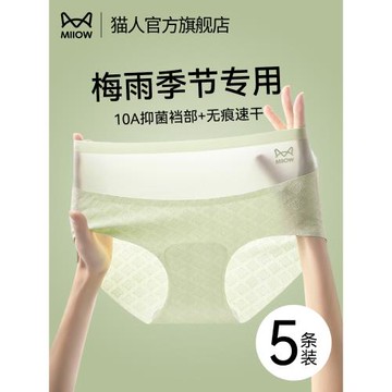 貓人無痕冰絲內褲女夏季新款純棉襠抑菌中腰薄款透氣女生三角褲頭