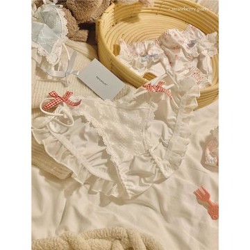 桃蜜糖水溶花邊純棉蕾絲洛麗塔文胸內褲套裝棉質內衣薄杯甜美少女