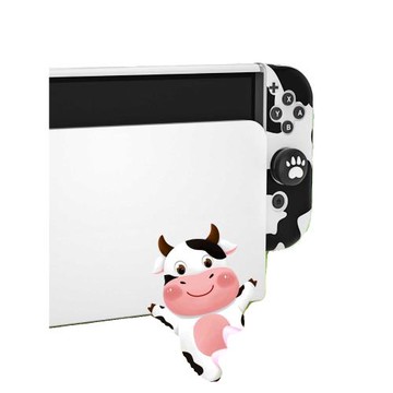 任天堂SwitchOLED保護殼奶牛圖案SwitchOLED噴油硬殼保護套鋼化膜
