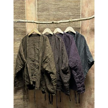 316#森女族秋季新款炒色做舊粗麻加厚V領交叉系帶蝙蝠袖開衫馬甲