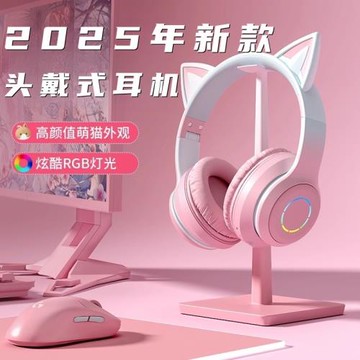 2025新款藍牙耳機頭戴式無線降噪耳麥游戲電腦有線貓耳朵女生小巧