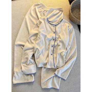 Sin Glee 韓系簡約風撞色德絨睡衣女冬季保暖長袖長褲居家服套裝