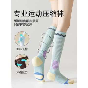壓縮襪專業運動健身跑步跳繩馬拉松騎車小腿長筒壓力襪子強壓防滑