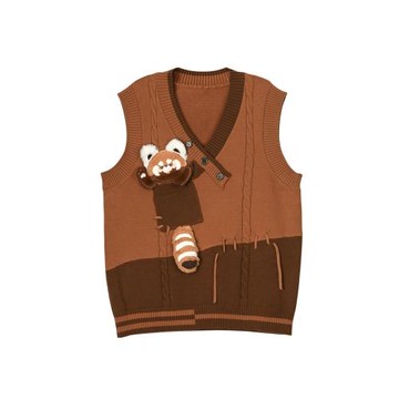 森系美拉德風棕色針織衫馬甲女秋冬新款復古立體熊貓可愛毛衣背心