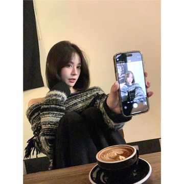 XinmonLee高級慵懶風豹紋美拉德毛衣開衫秋冬季復古短款顯瘦外套