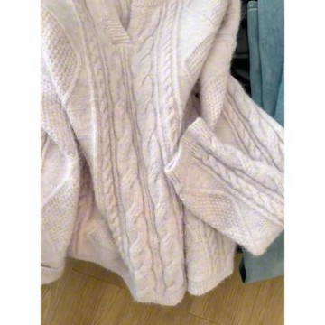 點我下載寬松大碼輕奢高端貨粉紫色麻花V領針織上衣女冬季慵懶風洋氣毛衣