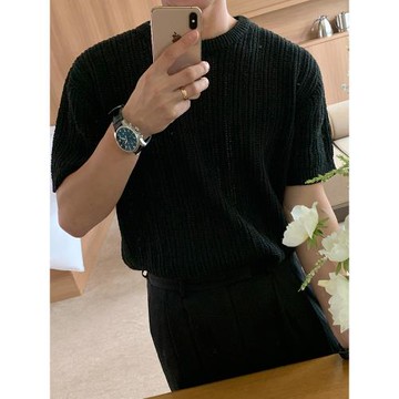 MRCYC設計感鏤空針織衫T恤男夏季寬松圓領短袖韓系潮流百搭半袖