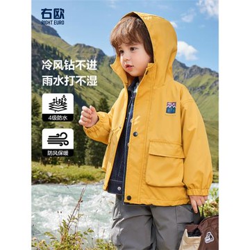 布芮歐2024冬新款男童可脫下加絨沖鋒衣外套拉鏈衫兒童童裝56021