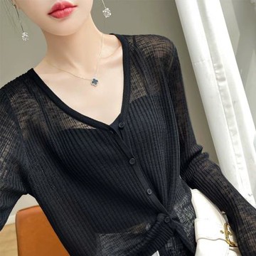 竹節麻冰絲防曬開衫薄款女針織短款顯瘦黑色空調衫吊帶裙外搭罩衫