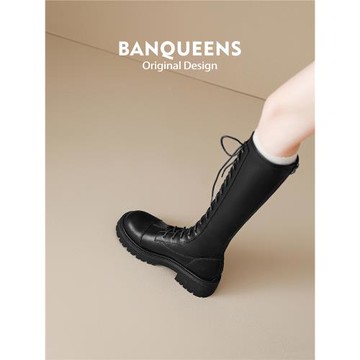 圓頭厚底中筒靴增高英倫風機車馬丁靴女款2026新款騎士靴系帶短靴