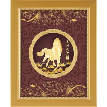 純金 金箔畫 博雅系列~【馬到成功】....26 x33 cm
