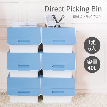 【時尚屋】[KW7]青木直取式藍色可疊收納箱-6入KW7-HB41 免運費/台灣製/收納箱