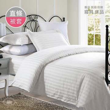 旅行趣飯店民宿專用 CVC混紡棉白色直條紋薄被套 (加大8X7尺)