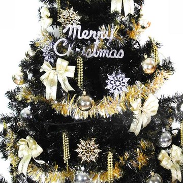 摩達客 台灣製15呎/15尺(450cm)時尚豪華版黑色聖誕樹(+金銀色系配件組)(不含燈)