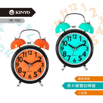 KINYO小型馬卡龍雙鈴靜音掃描鬧鐘TB-702