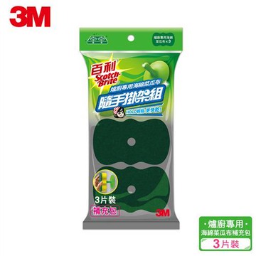 3M百利隨手掛架組-爐廚專用海綿菜瓜布3片裝補充包