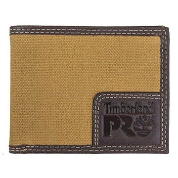 Timberland 2018男時尚 Pro黃褐色雙縫帆布皮革雙折皮夾