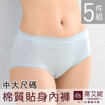 席艾妮 SHIANEY MIT 現貨 中大尺碼 舒適棉質 貼身彈力 中腰女三角內褲 5件組