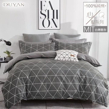 DUYAN竹漾- 台灣製100%精梳純棉雙人加大四件式舖棉兩用被床包組- 百慕達三角