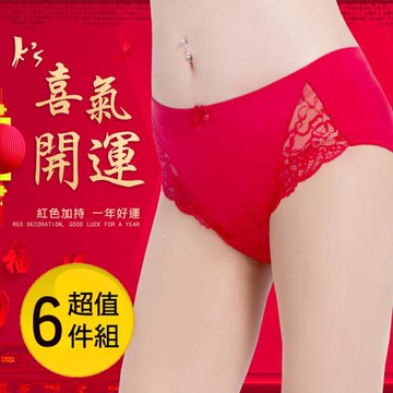 Ks 凱恩絲 專利蠶絲喜氣洋洋好運大紅色內褲 6件組