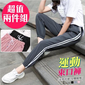NEW POWER 大碼條紋女休閒束口褲-超值兩入組