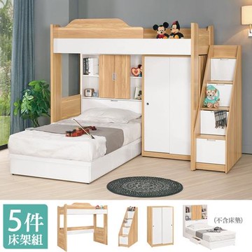 Homelike 喜家居收納樓梯雙層床(附抽屜)(2252)-251x113x165cm