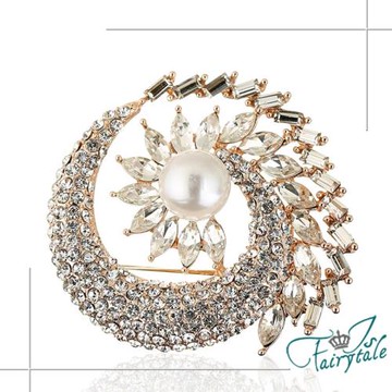 【伊飾童話】太陽炫光*珍珠水鑽別針胸針/金