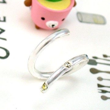 I.Dear飾品-正白K-中意你-曲線晶鑽造型情侶可調節開口戒指GA25