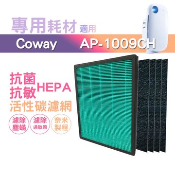 適用 Coway格威 加護抗敏型空氣清淨機 AP-1009CH 三年份耗材組【HEPA濾心*1+加強型活性碳濾網*4】