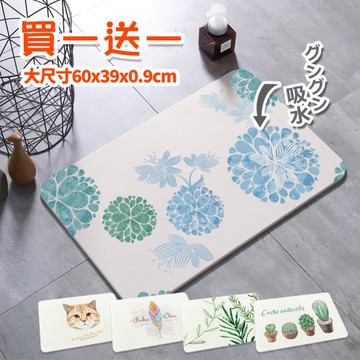 【買一送一】彩繪優質珪藻土地墊 大尺寸60*39*0.9cm (限同款)