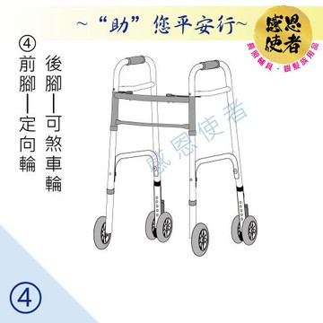 感恩使者 助行器 - 健步助行器 [ZHCN1921-4] 前腳定向輪+後腳可煞車輪 機械式助行器 ㄇ字型助行器 鋁合金材質