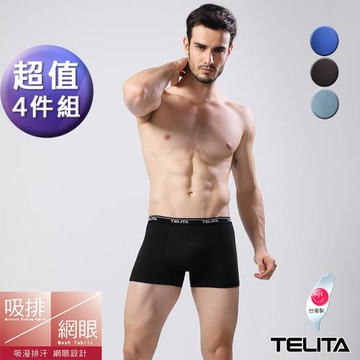 點我下載【TELITA】(超值4件組)男內褲 吸溼涼爽運動平口褲/四角褲