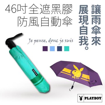【PLAYBOY】46吋全遮光奈米黑膠防風自動三折傘(彩色夢想4色)