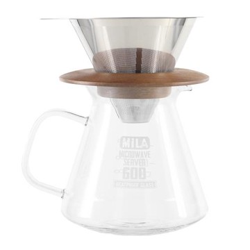 【MILA】不鏽鋼咖啡濾網(2-4cup)超值組合(原木架+耐熱壺)