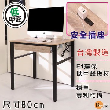 BuyJM低甲醛漂流木防潑水80公分穩重工作桌/附插座/電腦桌 I-CH-DE085WO