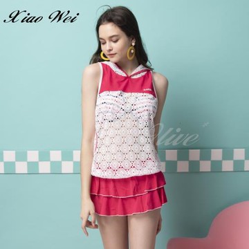 比基尼妮.愉悦長袖微紗三件式泳裝(M-XL)