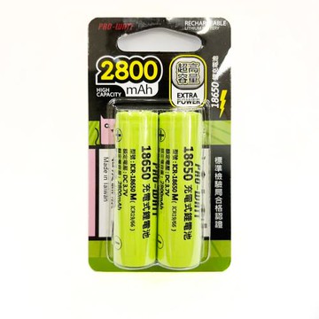 【華志PRO-WATT】2800mAh高容量18650高頭 2入 充電式 鋰電池(台製)