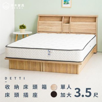 傢俱工場-吉米 MIT木心板床組 (插座床箱+床底+獨立筒墊) - 單大3.5尺梧桐
