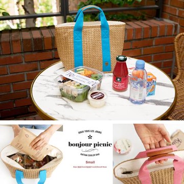 【韓國創意品牌 invite.L】新配色款!! 時尚藤編設計 S號 保冷袋 保溫袋 藤編包 餐盒袋 便當袋 手提包