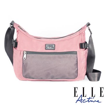 【ELLE Active】透視網布系列-側背包/斜背包-大-粉紅色