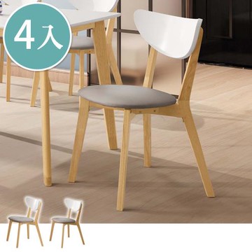 Boden-基維灰色皮革實木餐椅/奶茶木紋色餐椅/休閒椅/洽談椅/商業椅(四入組合)