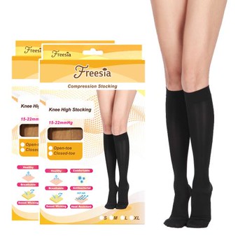 【Freesia】彈性壓力襪-露趾小腿襪(2雙組)(280D/15-22mmHg漸進式壓力)運動保健襪/彈性襪/美腿襪/靜脈曲張襪